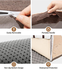 • REMOVABLE WATERPROOF COVER:Equipped with a high-quality L-shaped zipper,the dog sofa bed cover is easy to wash and maintain.The inner layer features a TPU waterproof layer,effectively avoiding liquids seeping through and keeping the dog bed couch dry
